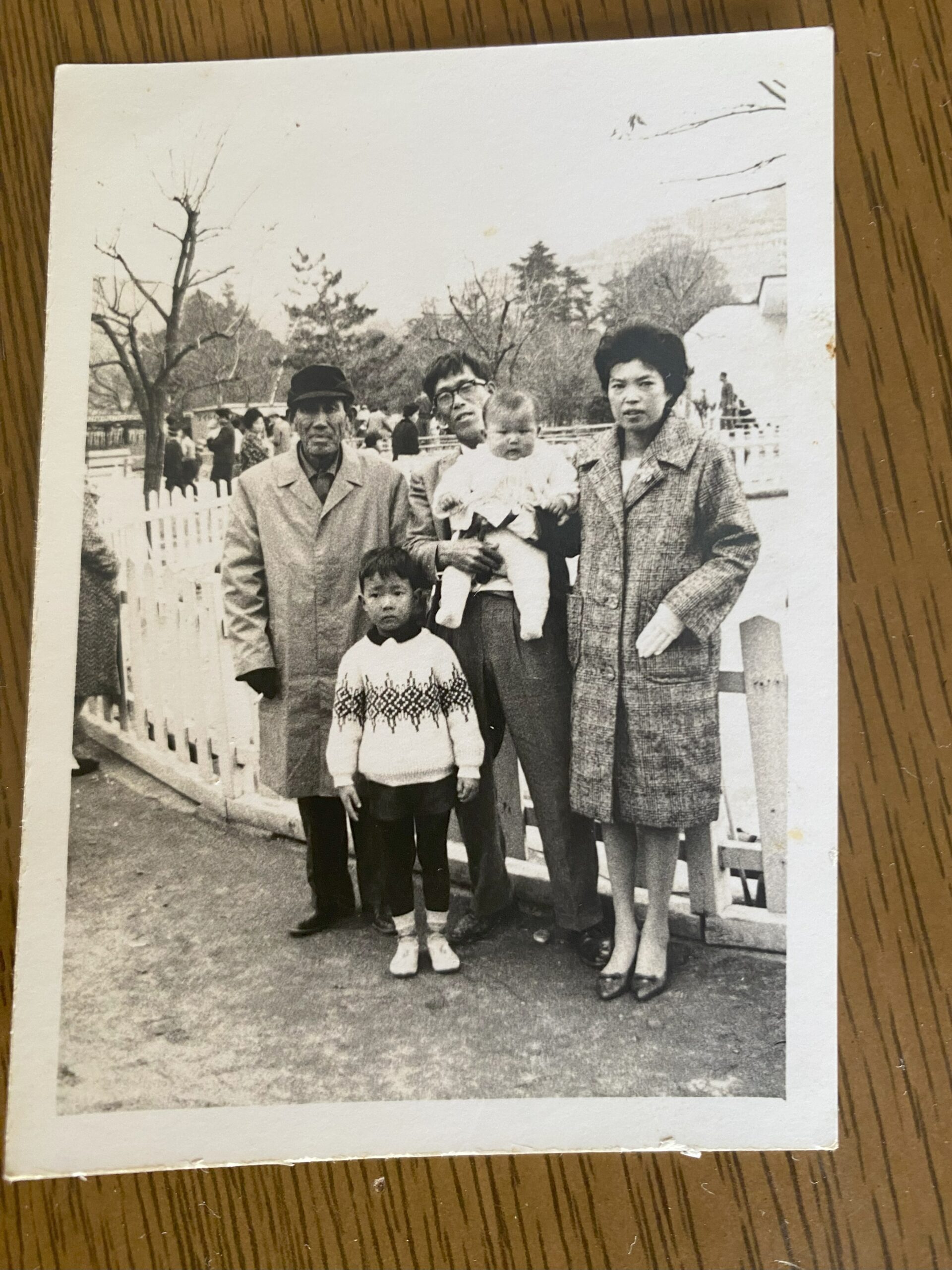 ※仏壇の掃除をしていて昔の写真を発見しました。中で、前にもアップしたかもしれない、たぶん昭和39年の冬、京都市動物園にて、祖父と両親と修二くん(父の従弟)と。